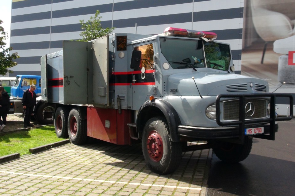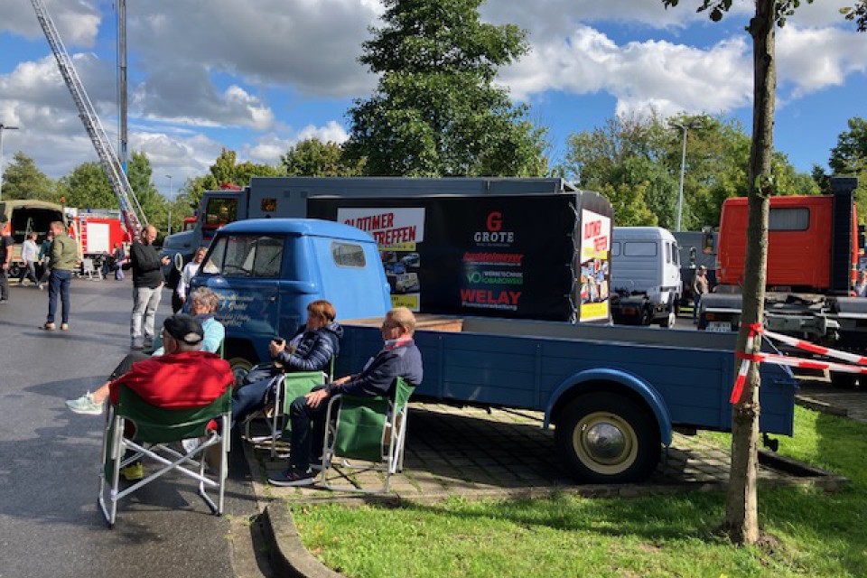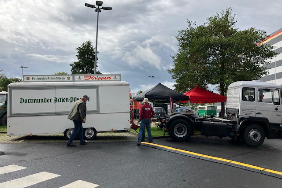 Diesmal präsentierten sich über 70 historische LKW, Busse, Einsatzfahrzeuge und Transporter. Wie zur diesjährigen Münster-Classics - es begrüßte uns der Morgen mit Regengüssen und erfreute uns der Tag mit Sonnenschein und einem kleinen Schauer zur Mittagszeit - also angenehme Bedingungen für 'harte' Jungs und Mädels am Volant und interessierte Besucherinnen und Besuchern. Gegen kleine Spenden wurden Rundfahrten im Mercedes Omnibuszug und Bulli T1 durchgeführt, viele Dieselgespräche in und neben den Brummis gehalten und neugierige Blicke unter 'alten' Motorhauben genossen. Am historischen Bierwagen der DAB-Brauerei gab es kühle Getränke und in der Kochmütze des Möbelhaus Höffner ein leckeres Mittagsbuffet, Kuchen und Café gegen Spenden in freiwilliger Höhe. - So konnte mit Spass und Freude ein anzuerkennender Spendenerlös erzielt werden!