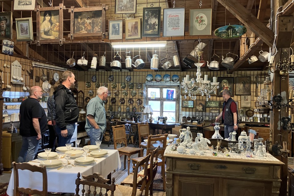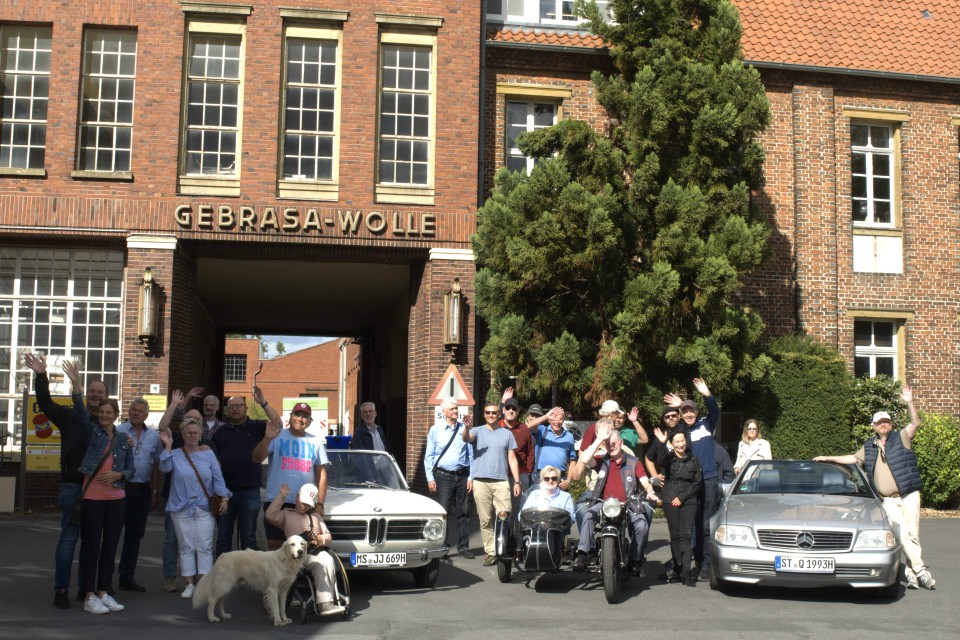 Zwei Museen, ein Schloss, eine ehemalige Wollgarnweberei und ein gemütliches Kaffeetrinken standen auf dem attraktiven Programm, das Vereins- und Beiratsmitglied Michael Kickum für die Ausfahrt zusammengestellt hatte. Startpunkt war Handorf, von wo aus 12 Oldtimer sich auf den Weg nach Sassenberg machten. Die Fahrt ging vorbei am dortigen Bundeswehrstandort, durch Telgte über Einen und Milte zum Ziel. Dort angekommen, erwartete uns eine leckere Kaffeetafel standesgemäß bei den "Oldies" - einer Vereinigung von Musikern - in einem der ältesten Häuser Sassenbergs. So gestärkt lauschten wir zunächst den Ausführungen von Reinhold Gebbe, einem Sassenberger Bürger über die bewegte Geschichte des Ortes an der Hessel, um uns anschließend auf dem Gelände der ehemaligen Spinnerei und Färberei "Gebrasa" (Gebrüder Rath Sassenberg) zwei Sammlungen, die unterschiedlicher nicht sein können, anzusehen. Das Museum "Offers" lädt ein zu einer besonderen Zeitreise. Vom Kaffeeservice über Möbelschränke und Radios bis hin zu einer eindrucksvollen Oldtimermotorradsammlung findet sich dort fast alles, mit dem sich unsere Mütter, Väter, Großmütter und -väter im frühen und auch späteren 20. Jahrhundert in ihrem Alltag umgaben. Für uns Oldtimerfreunde war der abschließende Besuch der Sammlung historischer LKW der Fa. Fehrenkötter das ganz besondere Highlight einer rundum gelungenen Ausfahrt.