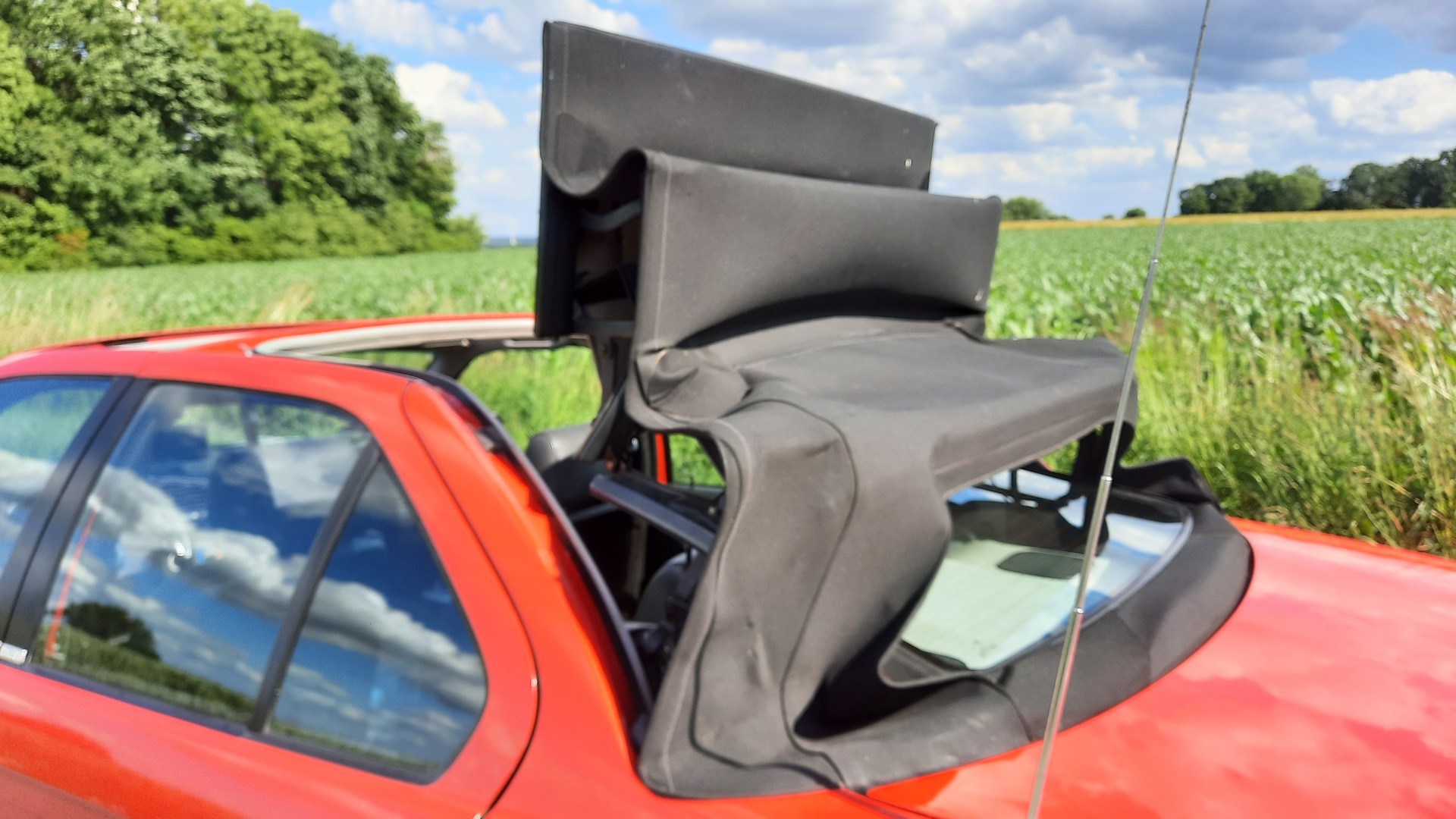 Das hintere Stoff-Dach des Wagen sollte nach nunmehr 33 Jahren ersetzt werden, es wurde mehrfach geflickt. Ein neues Dach samt Einbau bietet die Firma www.ck-cabrio.de an.